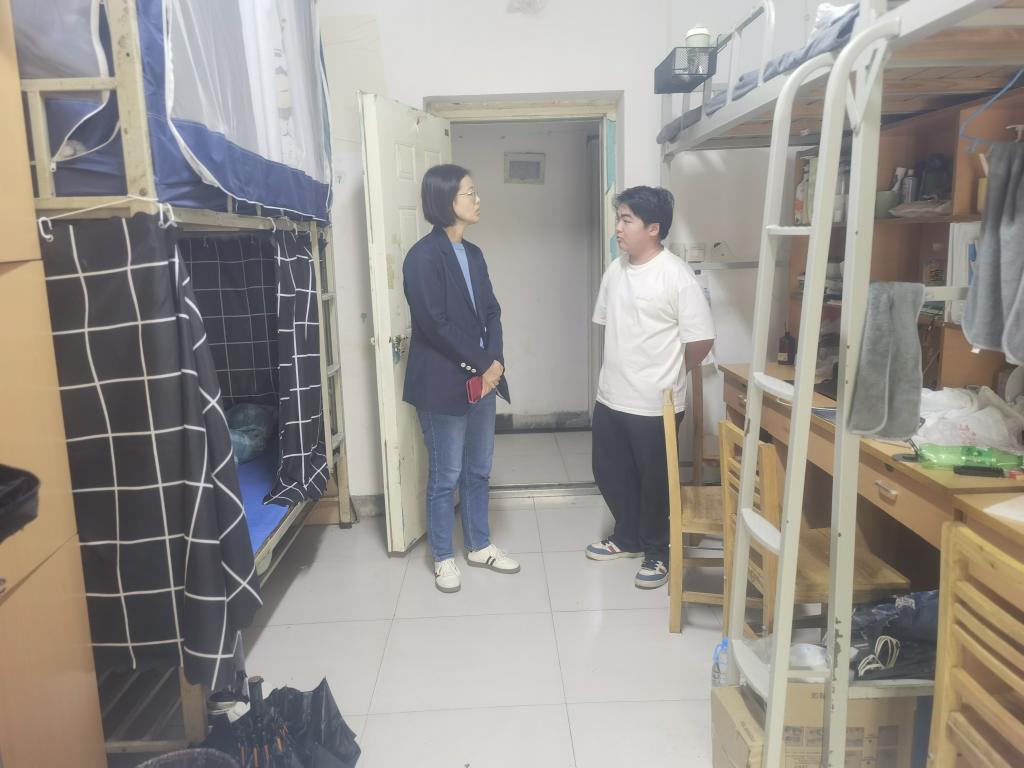 常宁博则重点关注宿舍环境卫生与设施状况,对个别内务不整齐、用电不规范的情况现场提出整改建议,引导学生养成良好生活习惯,共同维护安全、整洁、舒适的居住环境。