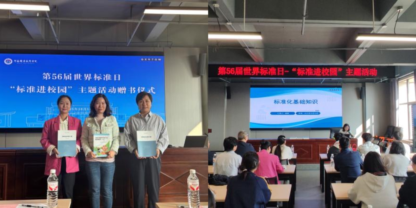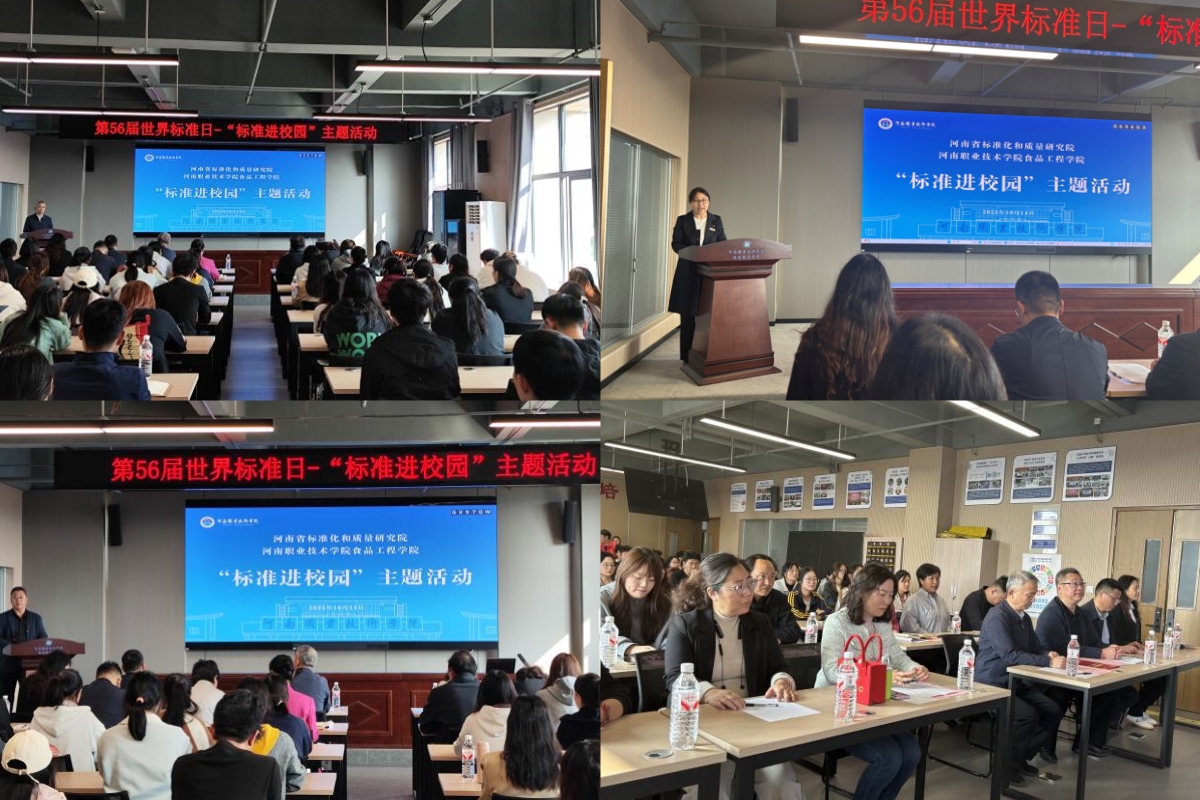 在全球聚焦标准化建设、共促可持续发展的时代背景下,10月14日,恰逢第56届世界标准日,食品工程学院携手河南省标准化和质量研究院,于我校合鼎楼719隆重启动“标准进校园”专业教育活动。校党委委员、纪委书记盛兴文,科技开发处处长吴德强,河南省标准化和质量研究院院领导郭敬东及核心专家团队,与食品工程学院领导班子、师生代表齐聚一堂,共同开启一场“标准赋能食品行业,校院协同培育人才”的深度对话。