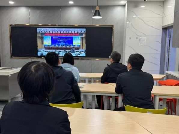 在集中收看环节,学院领导班子成员与骨干教师代表齐聚健行楼202室,全程专注观看直播,认真记录会议重点内容,深入领会实验室安全工作的最新要求与部署;针对授课期间无法参与集中收看的学生群体,各班级授课教师主动统筹课后时间,组织学生在指定场地集中观看回放,确保学生群体全覆盖、无遗漏;此外,对于因特殊情况未能到场的师生,学院明确要求其通过线上平台自行收看,切实保障活动参与的广泛性。