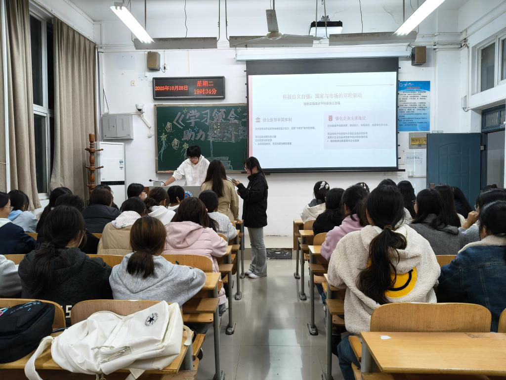 为深入学习贯彻党的二十届四中全会精神,引导青年学子将个人成长坐标融入国家发展蓝图,10月27日至30日,食品工程学院团总支组织2025级各团支部集中开展主题团课活动。本次团课创新课堂形式,通过动态信息图解读、微视频展播、情景模拟推演等创新形式,系统讲解了党的二十届四中全会主要内容与要点,深入解读“十五五”时期经济社会发展目标。