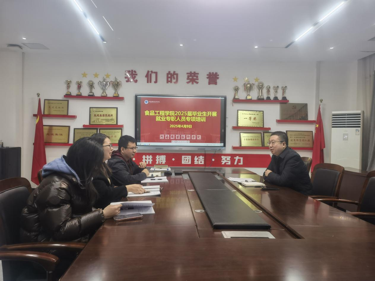 为提升就业工作队伍专业能力,精准推进2025 届毕业生就业帮扶,4月9日,食品工程学院在健行楼 109 会议室召开就业专职人员专项培训会。学院党总支副书记张宇主持会议,全体专兼职辅导员参会。
