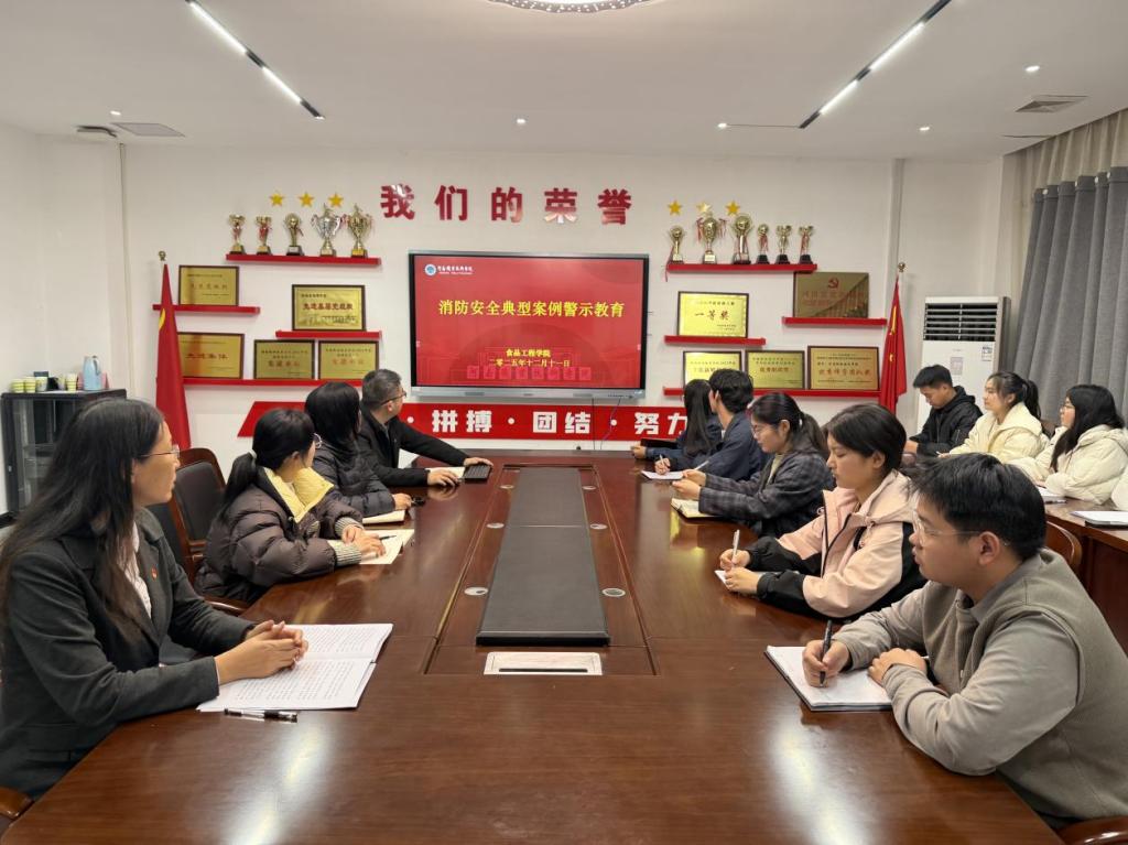 为持续强化师生消防安全意识,提升应对突发火情的自救互救能力,12月11日下午,食品工程学院在学院会议室集中观看消防安全典型案例警示教育片。活动由学院党总支书记王延东主持,全体教师和各专业学生代表参会。