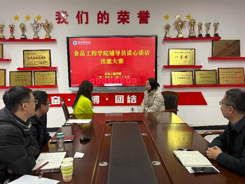 为深入落实“立德树人”根本任务,提升辅导员队伍的专业化、职业化水平,按照学校工作部署,12月25日,食品工程学院在健行楼109会议室举办了2025年辅导员谈心谈话技能大赛选拨赛。全体专兼职辅导员参加了比赛。