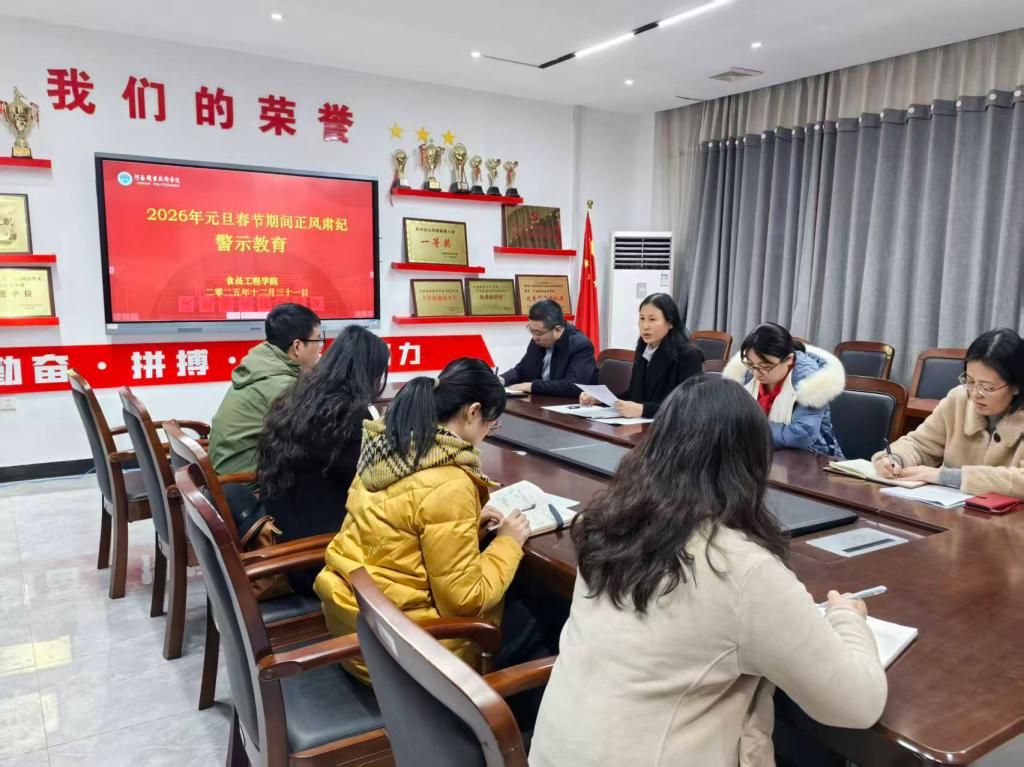 为深入贯彻落实中央八项规定及其实施细则精神,巩固拓展作风建设成效,以严的基调强化正风肃纪,营造风清气正、务实节俭、文明祥和的节日氛围。12月31日下午,食品工程学院党总支在109会议室召开元旦假期安全教育警示会,学院党总支书记王延东主持会议,全体教师参加学习。
