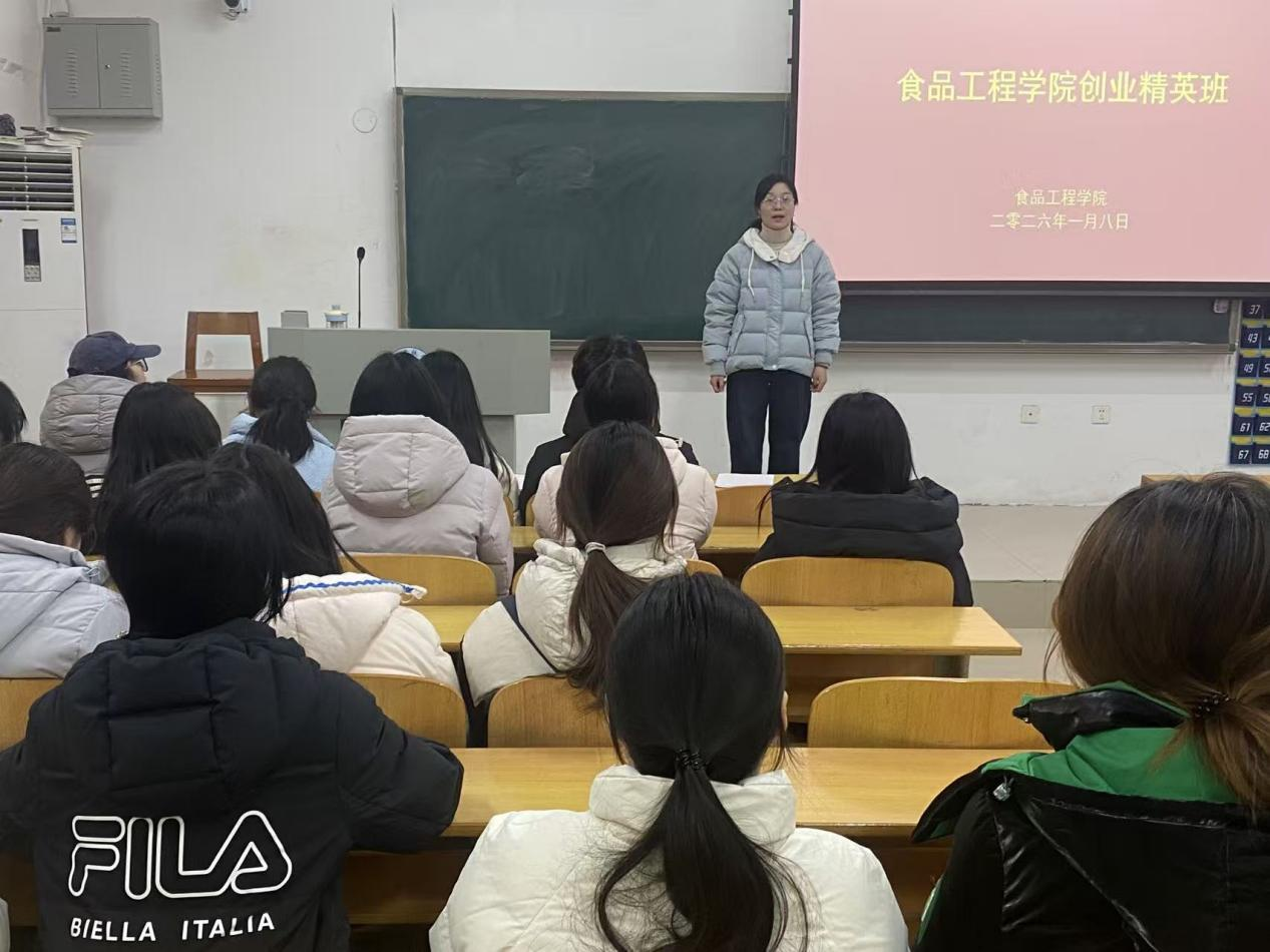 此次创业精英班的举办,是食品工程学院深化创新创业教育改革的重要举措,为有创业意愿的学生搭建了学习交流平台。后续,学院将持续推进创业指导工作,通过系列专题培训、实践实训等活动,切实提升学生的创业素养与实践能力,为培养更多食品行业创新创业人才奠定坚实基础。(撰稿:张儒雅 审稿:张宇)