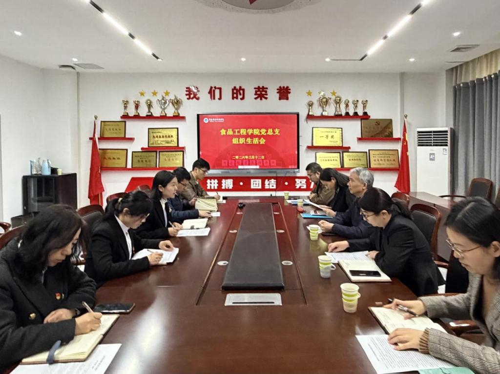 3月12日,校党委委员、纪委书记盛兴文深入食品工程学院,全程参与并指导学院党总支2025年度组织生活会。学院党总支委员立足自身思想实际,结合教学科研、人才培养等岗位职责,严肃开展批评与自我批评,深入查摆问题、剖析根源、明确整改路径,切实将思想和行动统一到学校党委的决策部署上来。学院党总支书记王延东主持会议。
