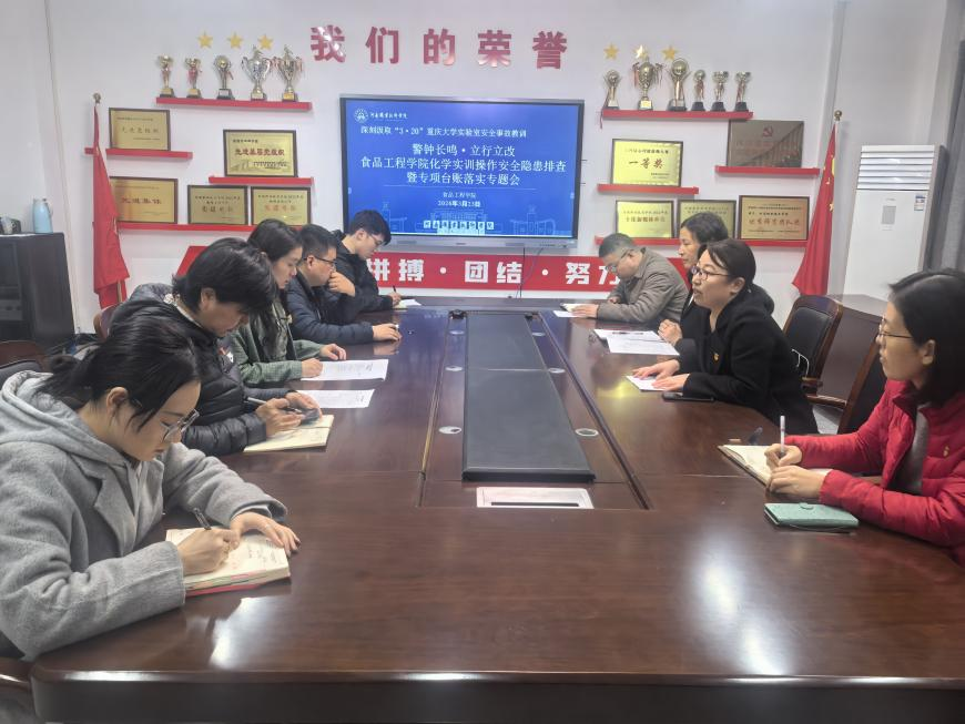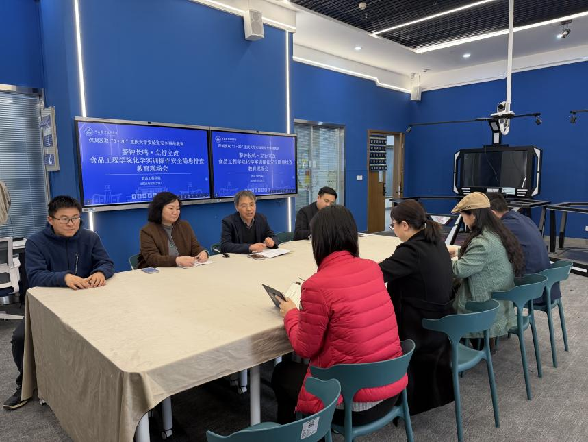 为深刻汲取高校实验室安全事故教训,进一步压实实训安全管理责任、强化安全防范意识,3月23日下午,食品工程学院在合鼎楼909实训室组织召开“警钟长鸣·立行立改”化学实训操作安全隐患排查教育现场会。校综合实训中心主任张凯、副主任李玉芝等一行莅临现场指导。食品工程学院院长胡二坤、副院长李亚欣及实训中心全体工作人员参加会议。