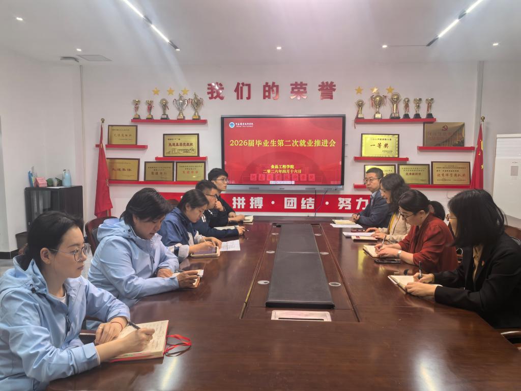 为进一步推进2026届毕业生就业工作,落实学校相关会议精神,4月16日下午,食品工程学院在健行楼109会议室召开2026届毕业生第二次就业推荐会,学院全体领导班子成员及教职工参加会议,会议由学院党总支书记王延东主持。