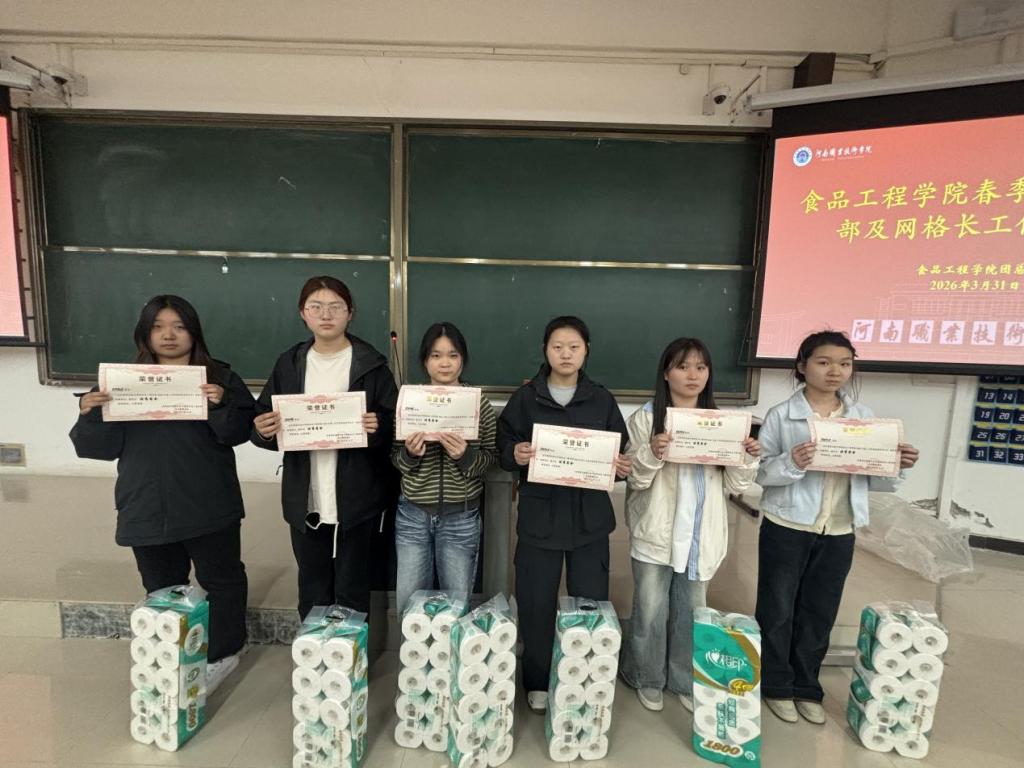 为深化“一站式”学生社区建设,营造整洁、文明、和谐、奋进的宿舍文化氛围,3月31日下午,食品工程学院在1104教室举行3月份优秀宿舍表彰会,学院党总支副书记张宇,团总支书记乔帆、全体学生干部及各层级网格长参加会议。